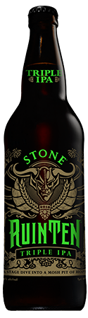 We first released this decidedly indelicate beer in 2012 as Stone Ruination Tenth Anniversary IPA to celebrate the 10th anniversary of our beloved bitter Stone Ruination IPA. Stone RuinTen Triple IPA uses the same recklessly hoppy recipe as the 2012 release; only the name has been changed to include “Triple,” which helps describe the over-the-top hop profile and elevated alcohol by volume. We packed a whopping five pounds of hops into each barrel, and cranked up the ABV to stand up to the hop onslaught. The results are glorious, and we know you’ll rejoice in tasting this audacious gem of hoppy splendor. You’re welcome. Again.