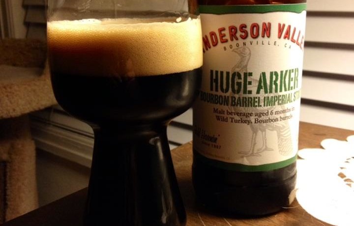 True to its Boontling moniker, “Huge Arker” is a massive force of nature that detonates on your tongue. After primary fermentation, the beer is aged in Wild Turkey® Bourbon barrels until it fully matures. The deep mahogany color is evocative of the opulence to follow. Dark luscious aromas of burnished oak mingle with candy sugar, bourbon and hearth-baked bread. The luxurious flavors redolent of honey and molasses are intertwined with the richness of dark chocolate and the ardent warmth of alcohol, underpinned with hints of coffee, vanilla and dark fruits. ABV from 11% to 13.5% in 2014.