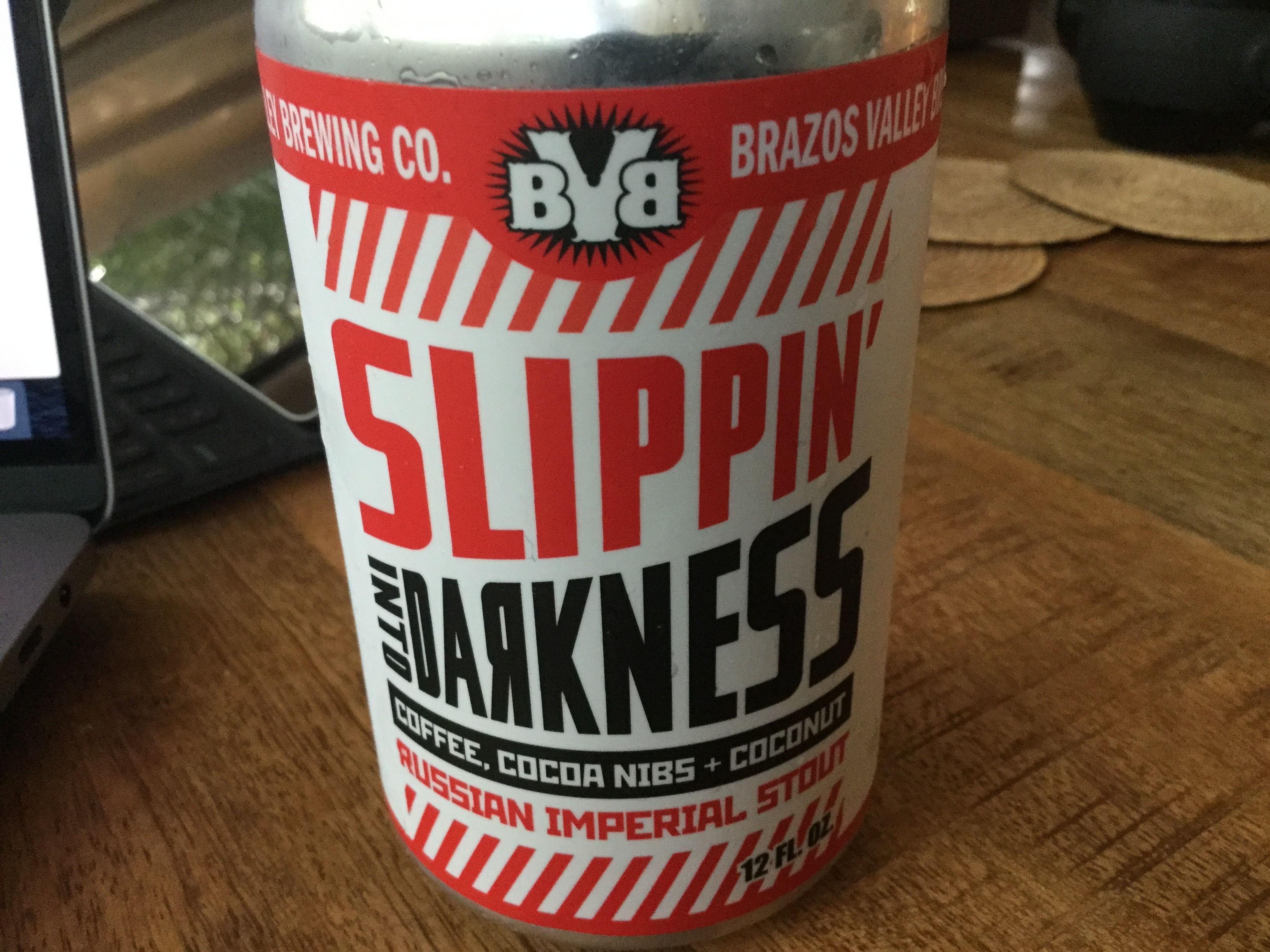 Brazos Valley BrewingSlippin’ Into Darkness - Coffee, Cocoa Nibs + CoconutRussian Imperial Stout | 10.5% ABV | 45 IBUOffered By: PHATMEAT |